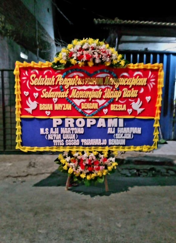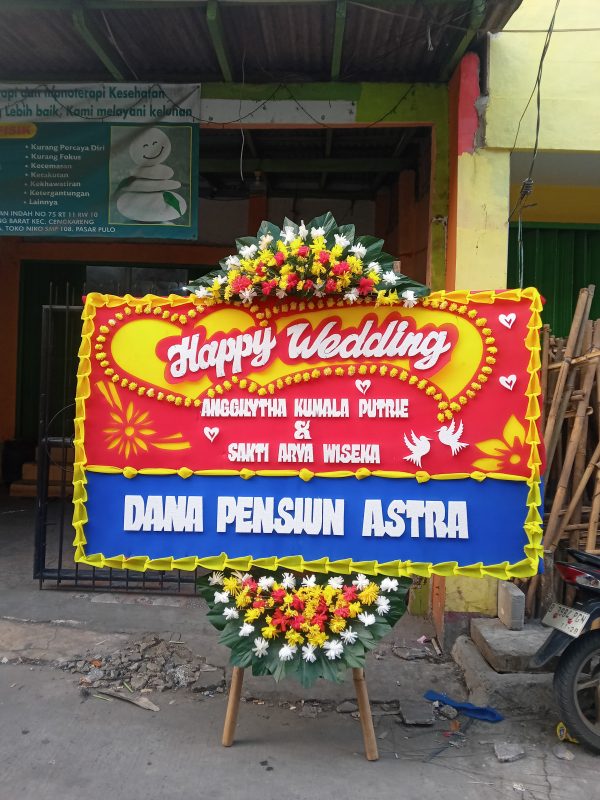 - Ukuran Standar Ideal: Dengan dimensi 2 meter x 1.25 meter, karangan bunga ini pas untuk memeriahkan berbagai ukuran venue, menambahkan sentuhan keindahan tanpa terlihat berlebihan.