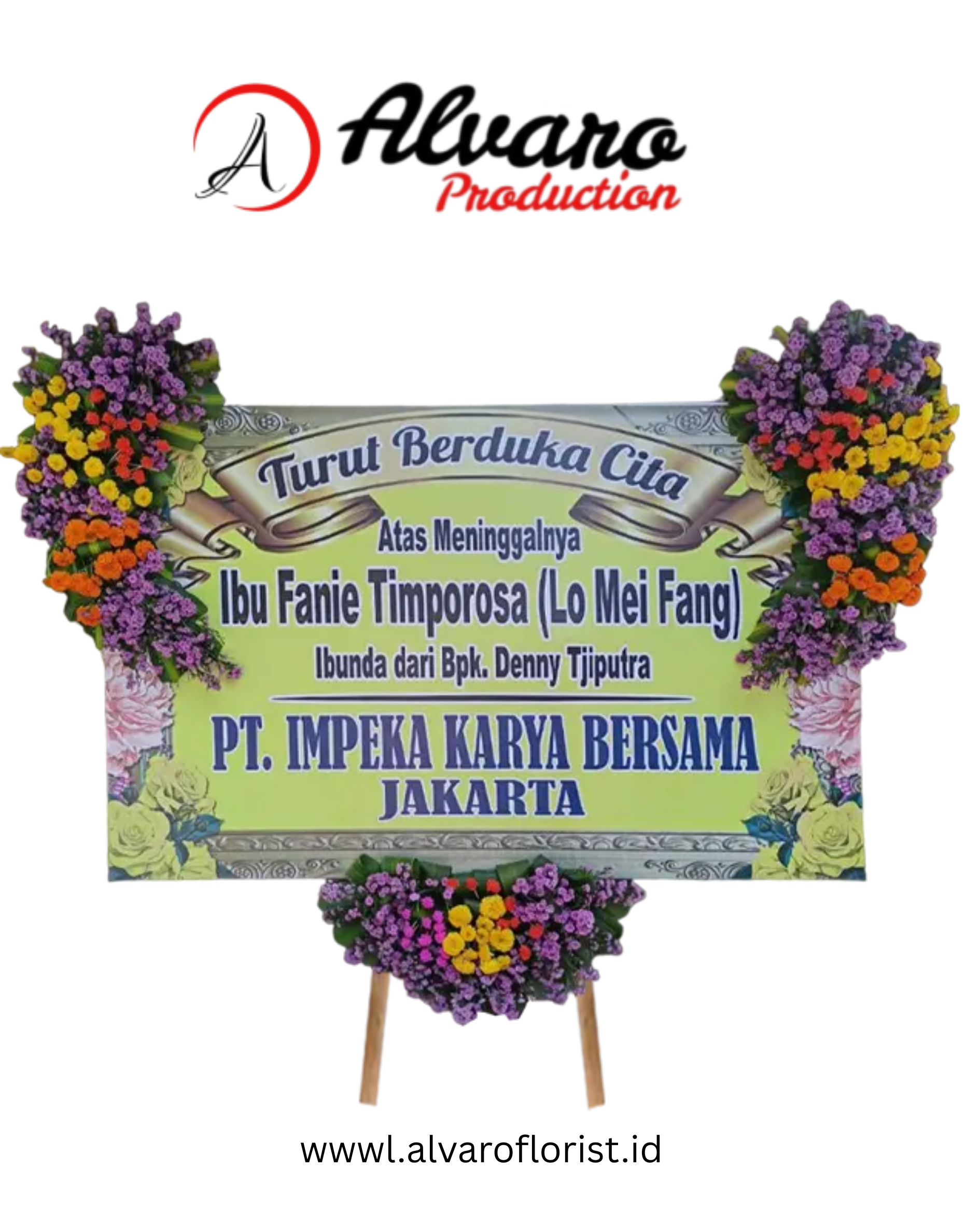 - Bunga Papan Duka Cita Jakarta: Sampaikan rasa belasungkawa yang mendalam kepada keluarga atau kolega. Layanan kirim bunga duka cita Jakarta dari Alvaro Florist Id siap membantu Anda.