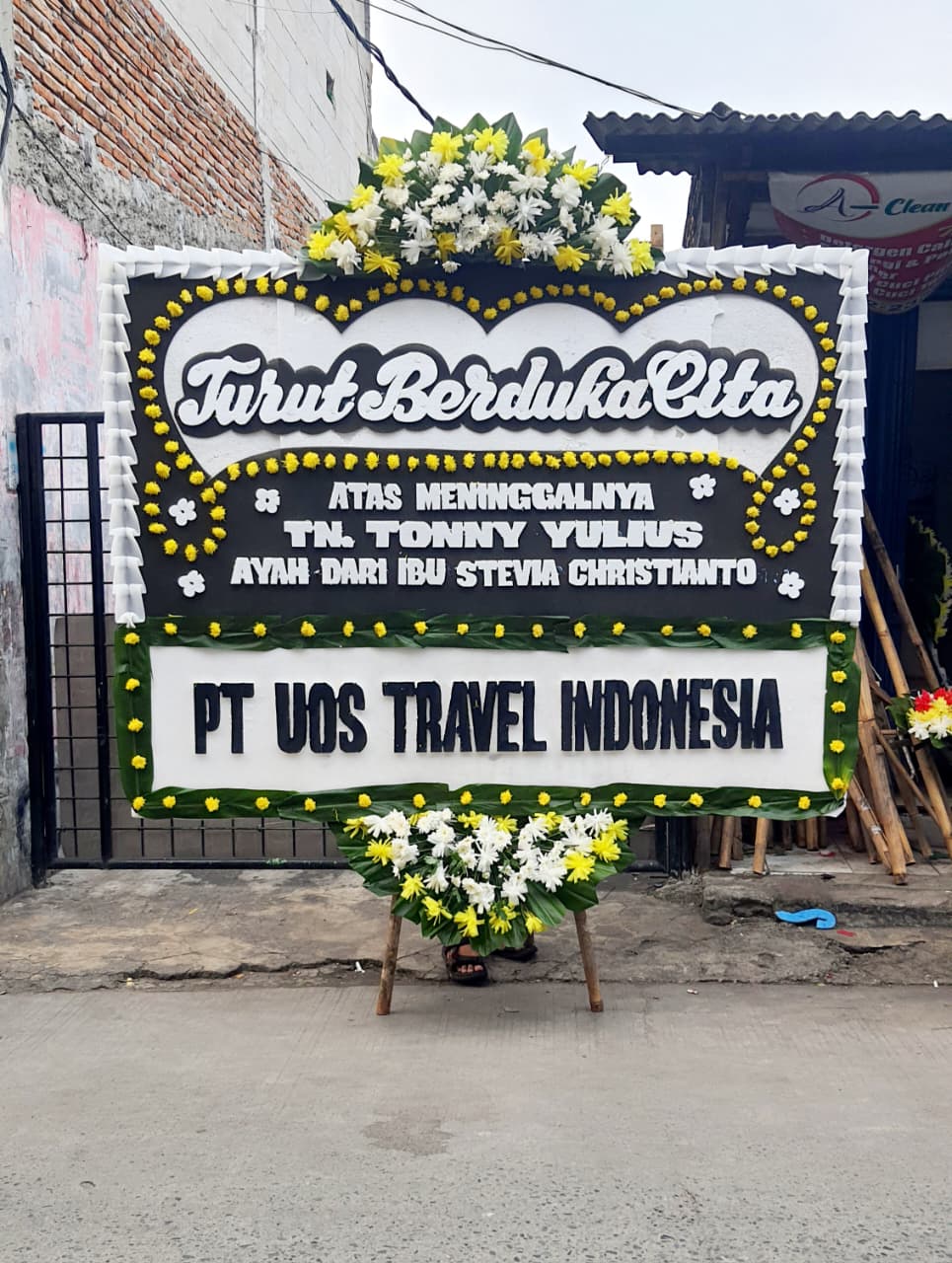 - Ukuran Penuh yang Bermartabat: Papan bunga ini tetap memiliki ukuran standar 2 x 1,5 meter, memastikan pesan Anda tersampaikan dengan jelas dan penuh hormat.